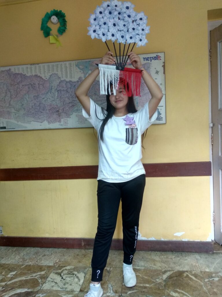 The exhibition done with the April month Handicraft stuffs actively prepared by girls in the instructions of the April month Incharge Rejina thapa Magar. The Handicraft Leader guided to collaborate to make the paper related crafts, decorating wall hanging and table standing items. Which was made by reusing the cartoon box, A4 papers, Colorful papers, small medical bottles; entire girls prepared the each individual item and gave their best effort to make it more attractive.