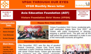 Please find the attached Newsletter of December 2021. We hope we have been successful in keeping you updated on the ongoing activities here at Vistare Foundation Girls’ Home educating the Vistare Girls.