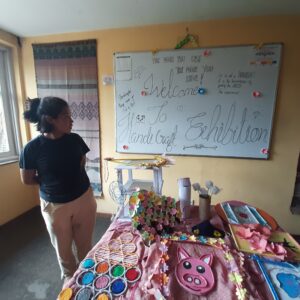 The exhibition done with the May month Handicraft stuffs actively prepared by girls in the instructions of Suku Maya Tamang (Handicraft leader of the May 2021). This month leader guided the girls to collaborate to prepare the paper & clothes related crafts. Girls reuse the A4paper, cartoon box, colorful papers, clothes, plastic. All the items were used and made the beautiful decorating wall hanging Frame, Mask, Vase, Artificial flowers and table stand stuffs. Entire girls prepared the each individual item and gave their best effort to make it more attractive.
